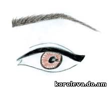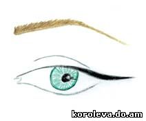 Подвести верхнее веко, подняв стрелку к виску (не в смысле по длине, а в смысле по направлению), подвести нижнее веко, соединить стрелки и прокрасить контур.
