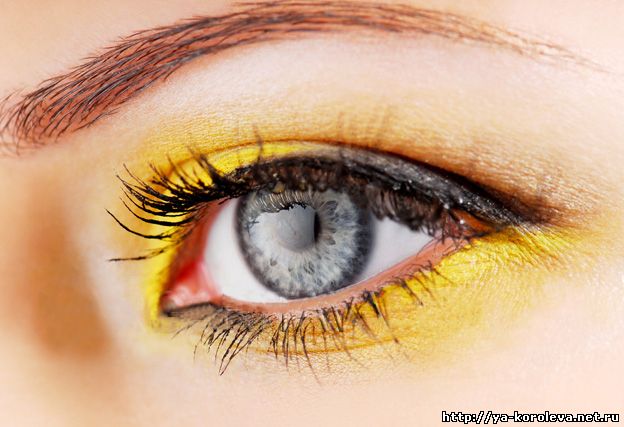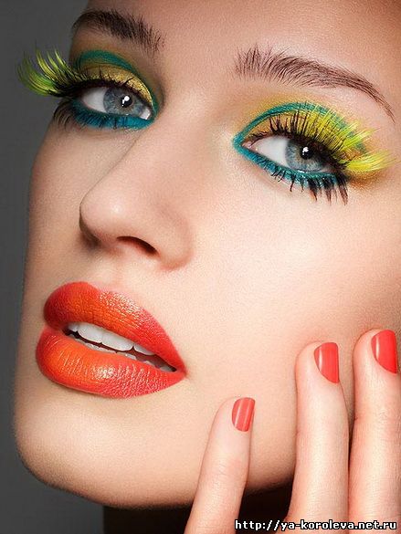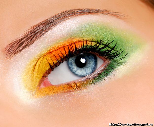 разных ярких цветов, наносим их на веки глаз в вашем любимом сочетании,